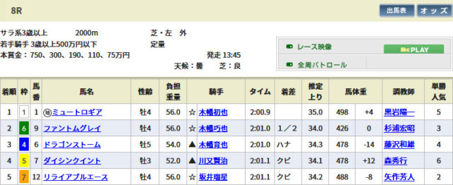 競馬トリビア 競馬トリビア第六弾 コワタコワタコワタ 2017/11/14 2017/11/14 スポンサーリンク (2017年秋)競馬トリビア10連発+3 その12 長男→次男→三男 2017年10月28日の新潟競馬8Rの若手騎手限定競走で木幡3兄弟がワンツースリーを決めた しかも先に生まれた順からゴールしていくというおまけ付き なお配当は3連複で11,450円、3連単で60,400円 スポンサーリンク Facebook Twitter はてブ Feedly