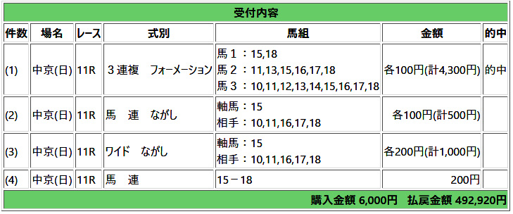 内側は渋滞すると見て外枠の馬を集めたアウトセット三連複馬券で夢を買う