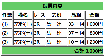- 京都3R3歳未勝利-馬券