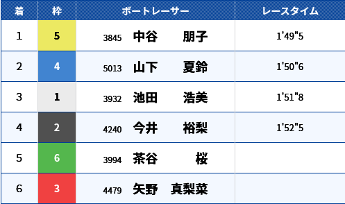 そしてそれを知っている5号艇の中谷朋子選手はスタートでいつもより半歩くらい踏み込むだろうと。